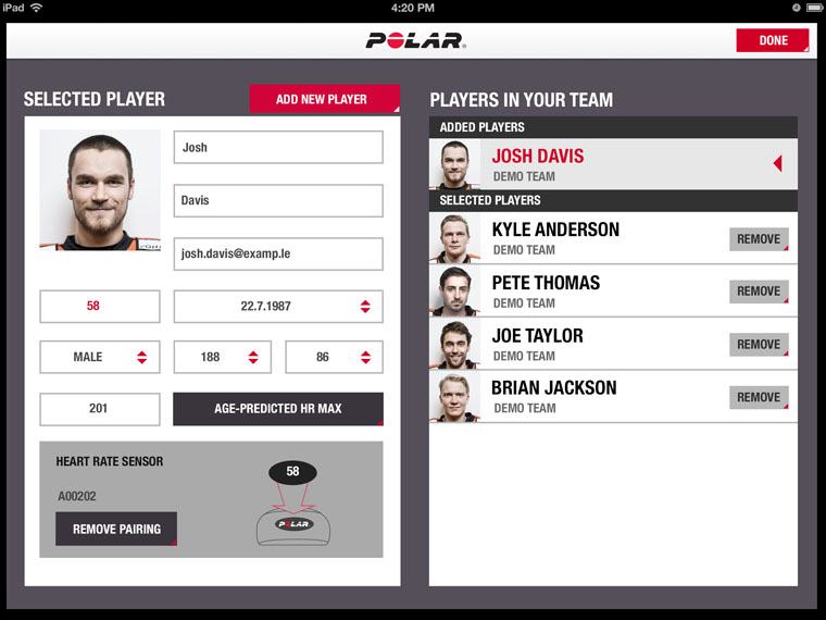 Приложение Polar Team разработано специально для того, чтобы помочь вам в проведении тренировок вашей команды в видах спорта для закрытых помещений. Решение представляет собой приложение для iPad и набор совместимых датчиков частоты сердечных сокращений Polar H7.