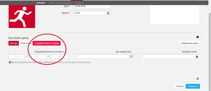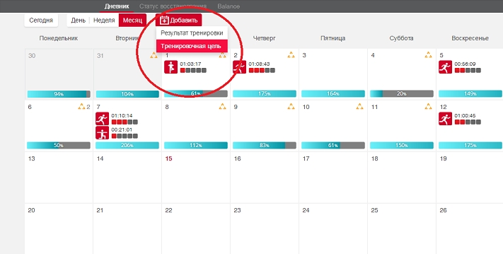 • Зайдите в свой Дневник на flow.polar.com и нажмите "Добавить"->"Тренировочная цель"