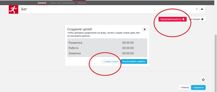 • В всплывающем окне выбираем "Название фазы", указываем ее "Продолжительность"  и самое главное двигая курсором указываем одну или несколько "Целевых зон", нажимаем ГОТОВО.
